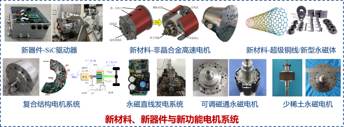 1. 新型电驱动与电推进技术:针对高效率、高可靠性、高功率密度、多功能等需求牵引,开展新材料、新器件、新功能电驱动系统、数字孪生与状态监测等方面的研究工作。