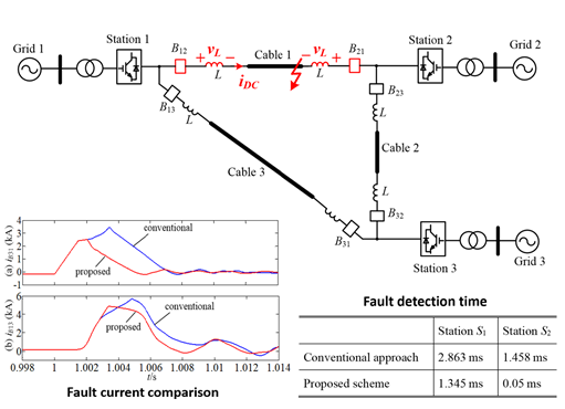 7.首次提出了基于直流电抗器电压变化率的故障检测策略,实现了对故障的精确定位,并将故障检测时间减少了一半以上,为直流故障的保护奠定了坚实的基础。这一成果在IEEE Trans. Power Delivery发表,开启了直流故障检测的全新方法,引起广泛关注及跟进,Google Scholar统计目前被引350次,并入选ESI 1%高被引论文。